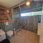 Het Boothuis apartment has an adjoining terrace, a sitting area, and a fully equipped kitchen, and comforts such as air conditioning. A highlight of the accommodation for guests is the presence of bath sheets in the bathroom. Additionally, you'll find a separate toilet and a shower.